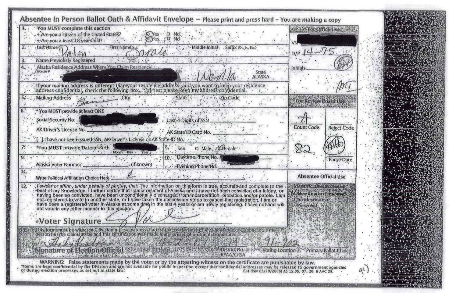 Governor of Alaska waiting for a commercial flight, and also notes her clearly